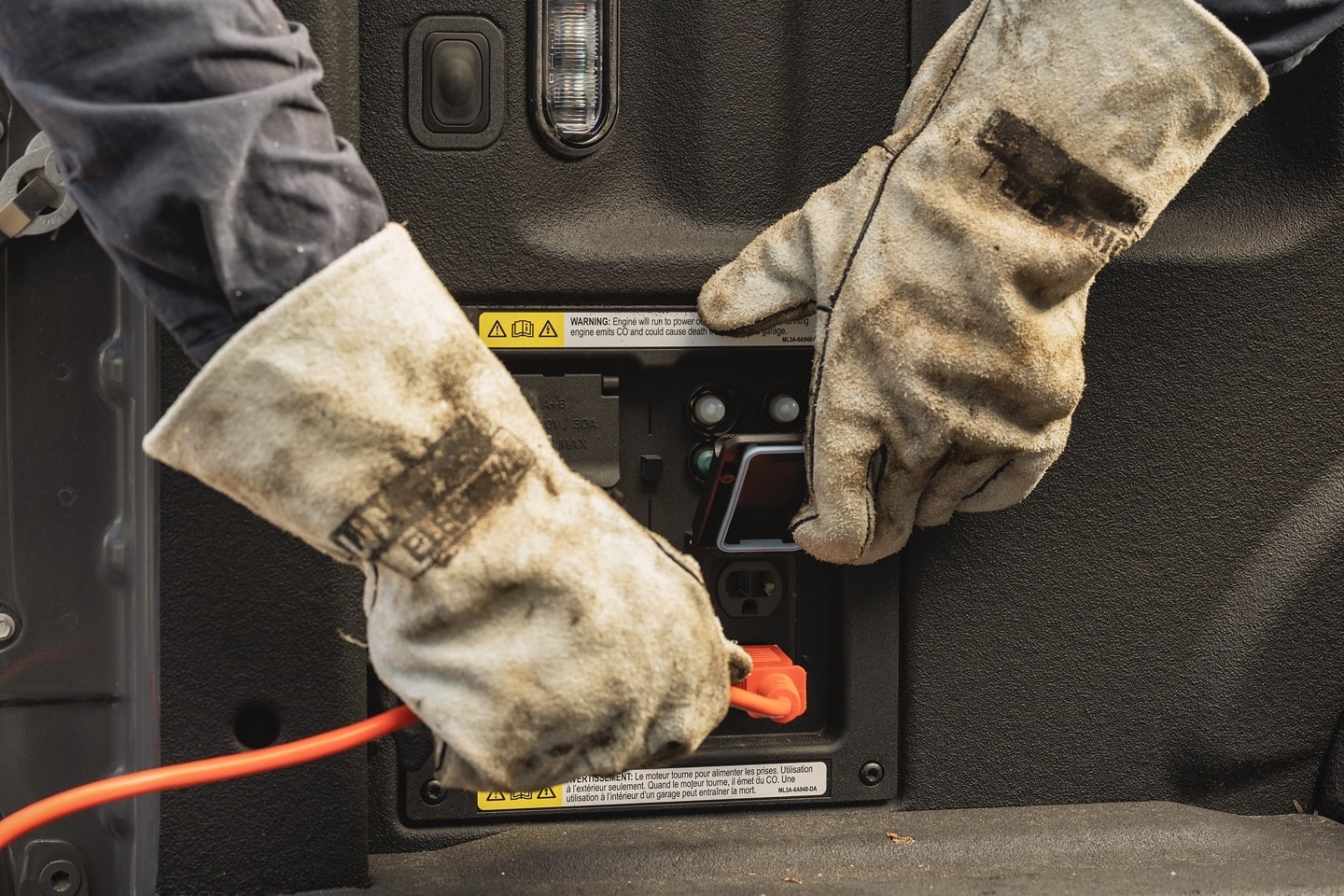 Ford F-150® puts productivity at the forefront with available built-in electrical power and a convenient tailgate work surface.
