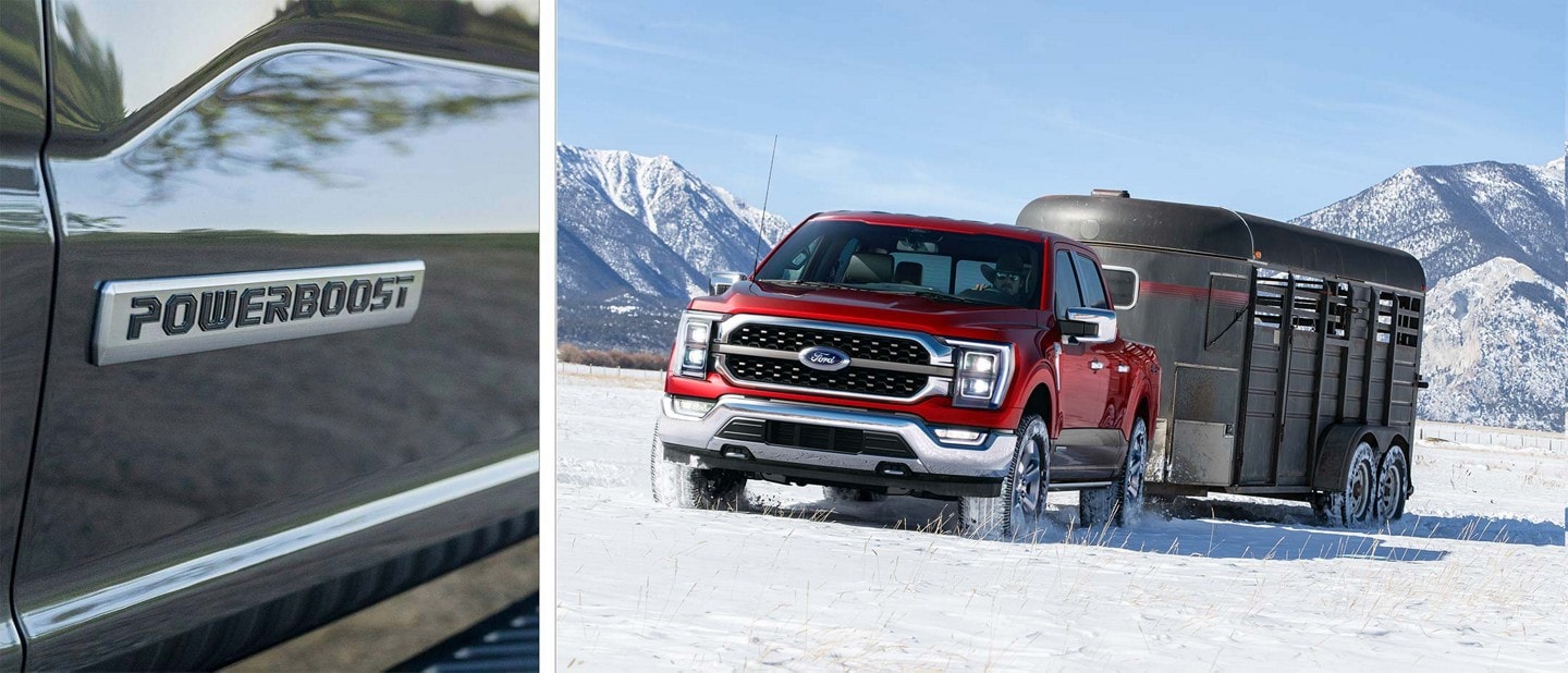 **Max towing on F-150 PowerBoost 4x2 with Max Trailer Tow Pkg. Max towing varies based on cargo, vehicle configuration, accessories and number of passengers.
